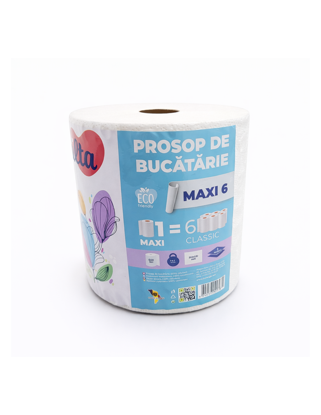 Prosoapele de hârtie Maxi-6 75 de metri sunt fabricate din materiale 100% naturale și sunt potrivite pentru utilizarea zilnică acasă, în bucătărie și în aer liber. Aceste prosoape sunt durabile și moi, absorb bine umezeala și rezistă la rupere și uzură atunci când sunt umede. Rola de 60 de metri este o soluție practică pentru utilizarea zilnică acasă, oferind echilibrul perfect între dimensiunea rolei și consum. Prosoapele de hârtie Milta sunt o soluție practică pentru menținerea curățeniei și igienei.