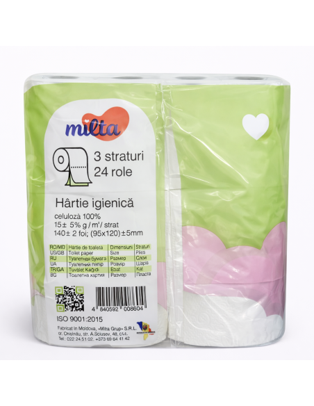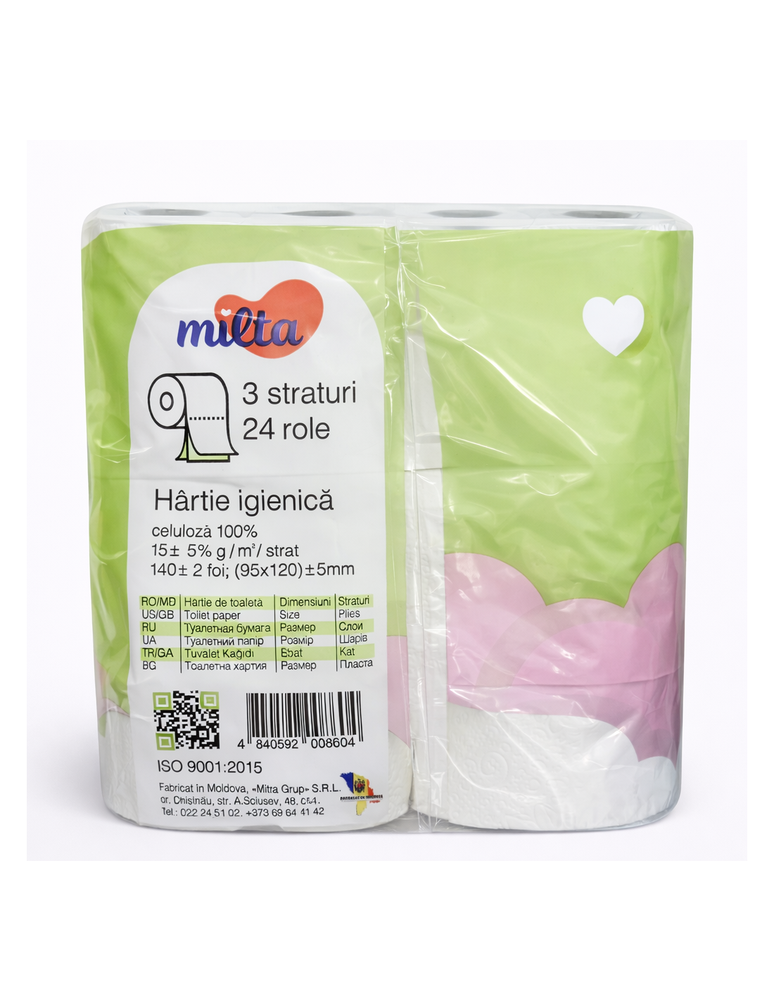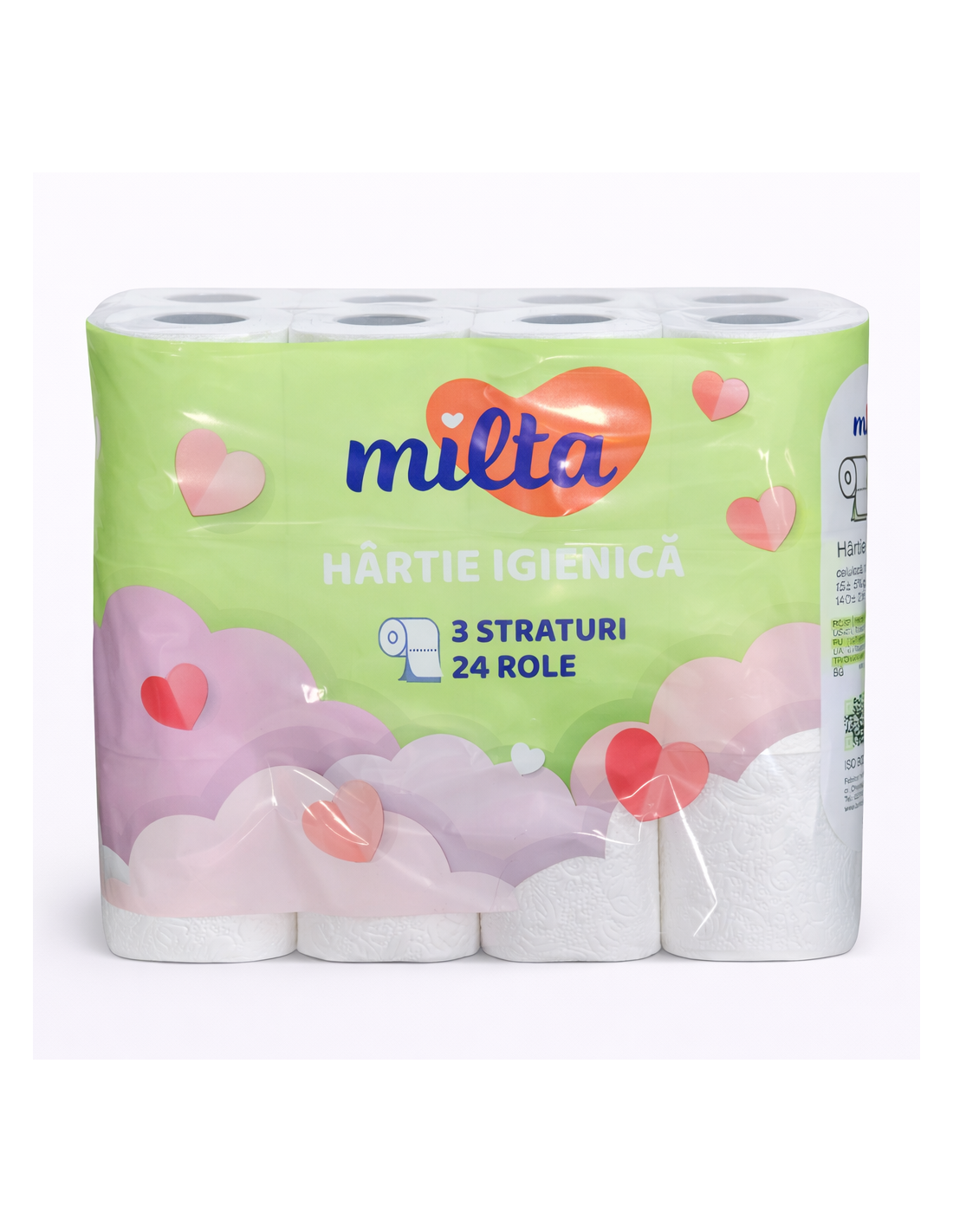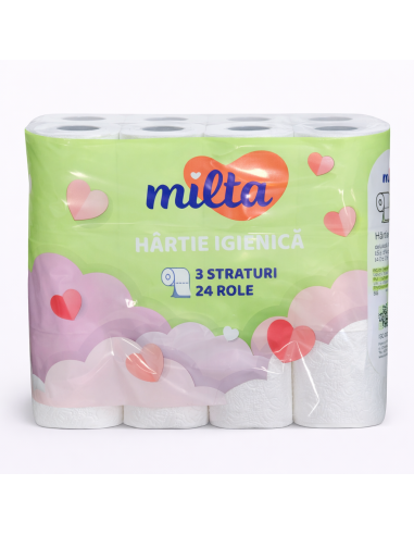 Бумага гигиеническая 3-сл Milta 24 рул/уп, целлюлоза, цвет белый